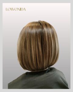 梳きすぎると艶がなくなり、持ちが悪くなるので耳より下のみレイヤー(段差を入れ髪を軽くする技術)を入れ表面の毛をかぶせている為、量を梳かなくても軽くできております。