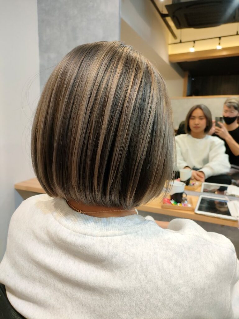 カットは一見シンプルですがただボブに切って梳いているのではありません。