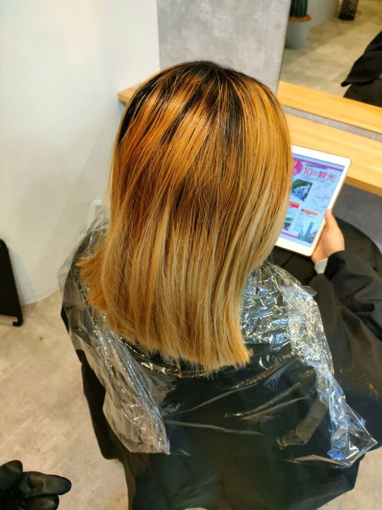 フィリピンで1度ブリーチされた様ですが要望より暗く更に明るくしたいという事でした。