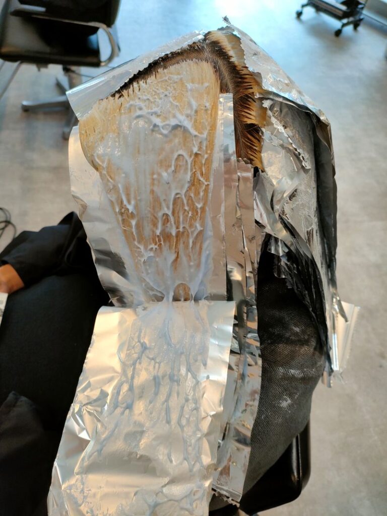 またホイルで挟むことで最低限の薬剤の力で綺麗にブリーチ可能です。