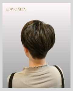 一見シンプルなスタイルでもエリアごとに異なるカットを組み合わせ、最終的な調和を設計する必要があります。